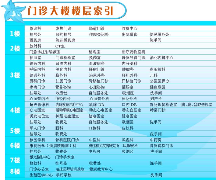 门诊楼层索引