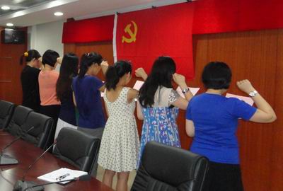 在纪念中国共产党成立93周年之际,7月3日下午,我院在门诊楼12楼多功能会议室举行2014年新党员入党宣誓仪式。院领导、各支部书记、支部委员、宣誓人员及入党积极分子共29人参加仪式。宣誓仪式由党政办公室主任肖斌同志主持。